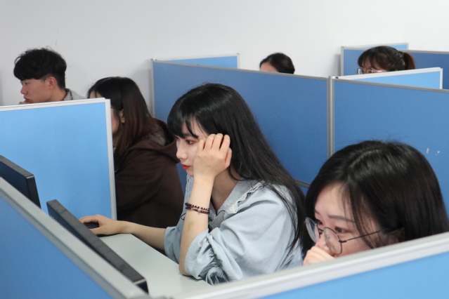 本次考试由秘书学专业负责人温瑜老师总负责,陈泉老师技术支持,教务办王玉珍主任巡考,包怡佳、李青、李红蕾、张津瑄、王欣茹、王圣维六位同学协助监考。考试内容涉及秘书职业的“职业道德、基础业务素质、案例分析、工作实务”四个方面,考试采用闭卷机考形式,考试题型为不定项选择题,考试时间为1个小时。下午13:20,考生陆续进入考场,考试之前,温瑜老师细心向同学们讲述了考试的注意事项。下午14:00,为时一个小时的考试正式开始。考试过程中,三位老师耐心地帮助同学们解决突发问题,同学们也都从容不迫,积极对待此次考试。一小时后,同学们陆续完成了答题,并有秩序地离开了考场。