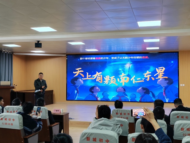 10月19日上午,结业仪式在丰县新城初级中学会议室举行。仪式由丰县教师发展中心研训员于光荣主持。活动伊始,优质课比赛特等奖获得者皇甫常延、陈龙建分别进行了教学展示。皇甫常延老师以“布置南仁东展区”为情境主线,通过绘制人生时光轴、聚焦细节描写等任务,引导学生深入理解人物精神品质;陈龙建老师创新设计“新闻访谈”形式,通过梳理关键事件、品读感人瞬间、书写时代回响三个层进式任务,让学生在真实的语言实践中感悟科学家的精神世界。