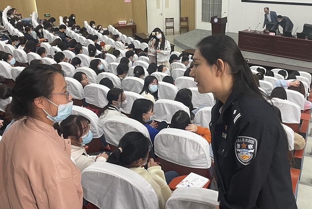 为提高文学院学生防诈骗意识,112日,校保卫处、文学院特邀高新区派出所社区中队长李琳警官,为文学院学生带来了一场深刻的防诈骗宣传教育。校保卫处牛宏铭老师、文学院学工办肖亚飞老师、王金歌老师及300余名21级新生、各班安全委员现场聆听了讲座,讲座同时面向全院学生直播。